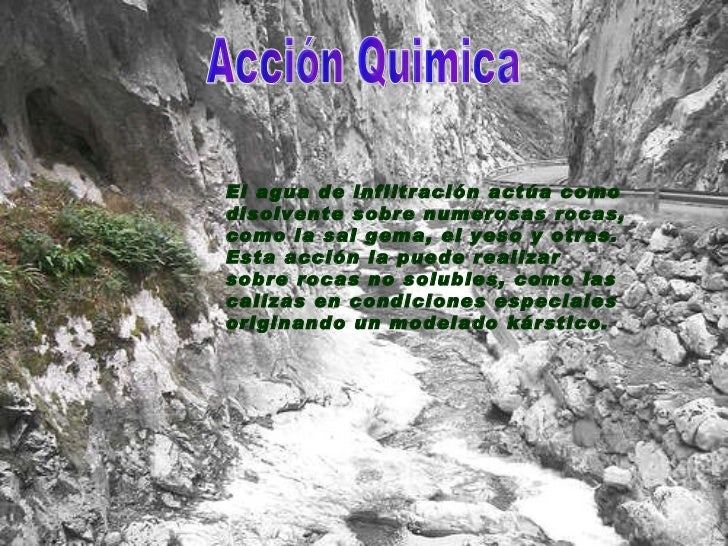 acciónes de agua subterranes. acciónes de agua superficiales. LÉNTICAS Y LÓNTICAS. tipos : Es malo por que el agua. al filtrarse , rellena los poros de la roca lo que provoca que pese más. y se incline formando. una capa de barro que es muy malo cortando vias de comunicación. y las vias del rio.