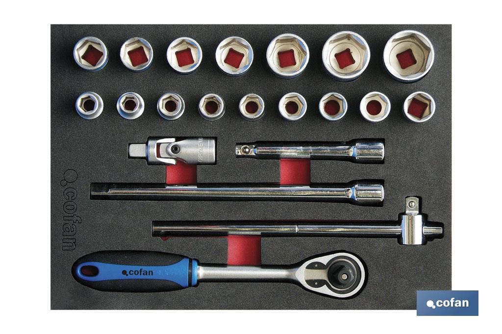 Set Vasos y Carraca 21 pcs 1/2” / 6 caras Cofan