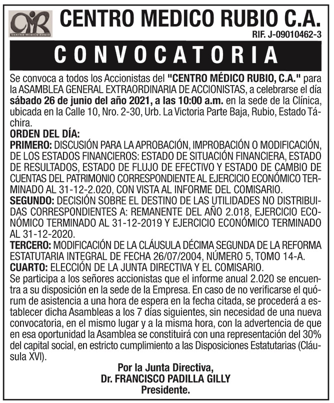 2X10 CONVOCATORIA CENTRO MEDICO RUBIO Diario de Los Andes