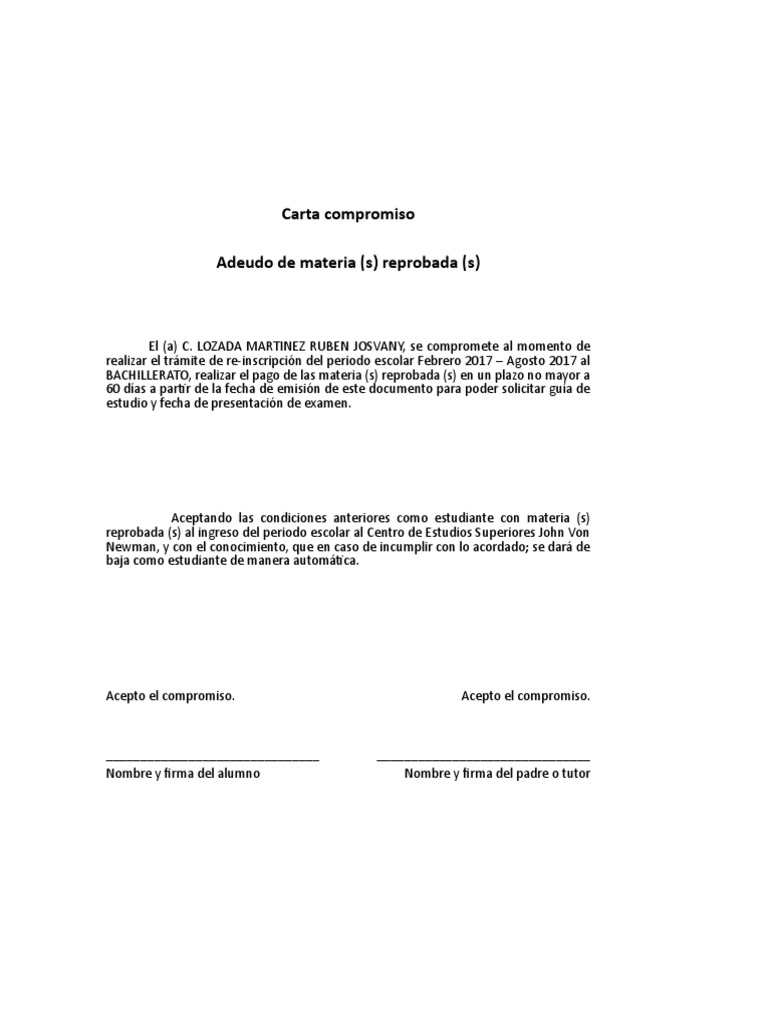 Carta de Compromiso Académico » Rellenar Online, Word, Pdf