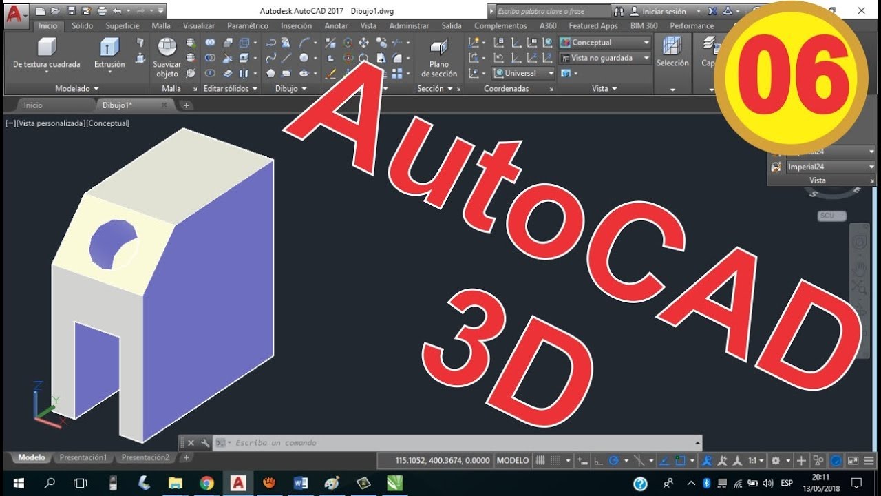 Video 06. AutoCAD 3D. Cómo seleccionar una cara para dibujo en 3D . 100 PRÁCTICO. YouTube
