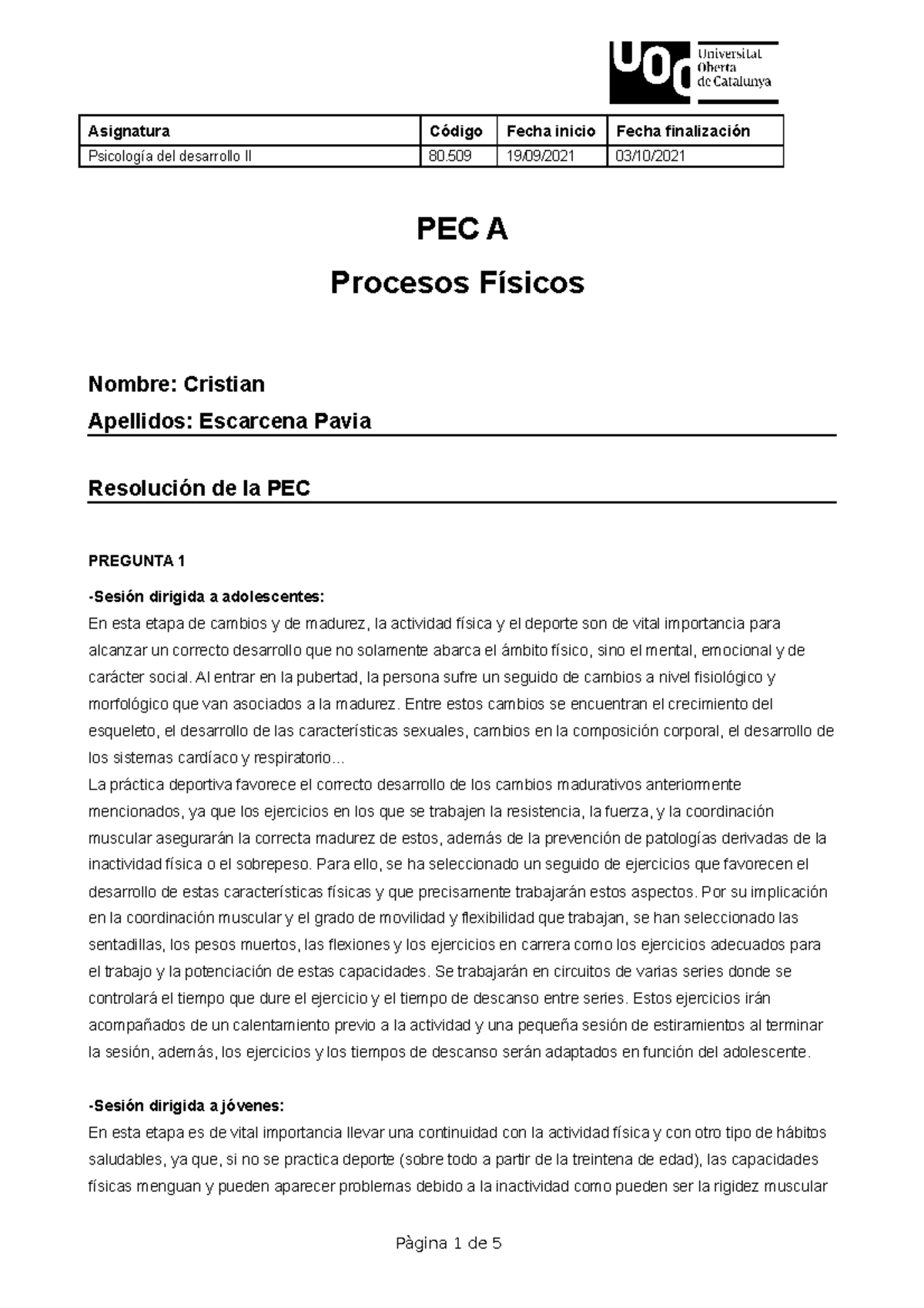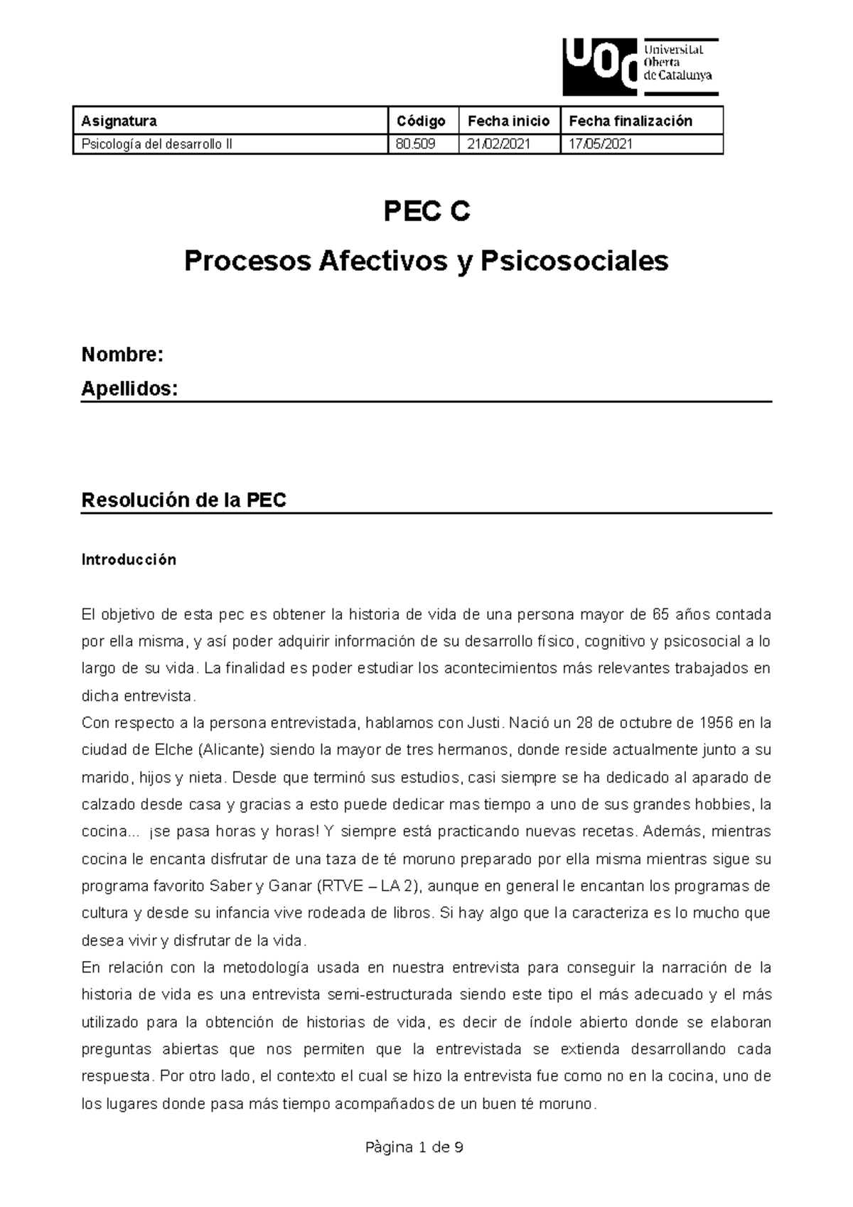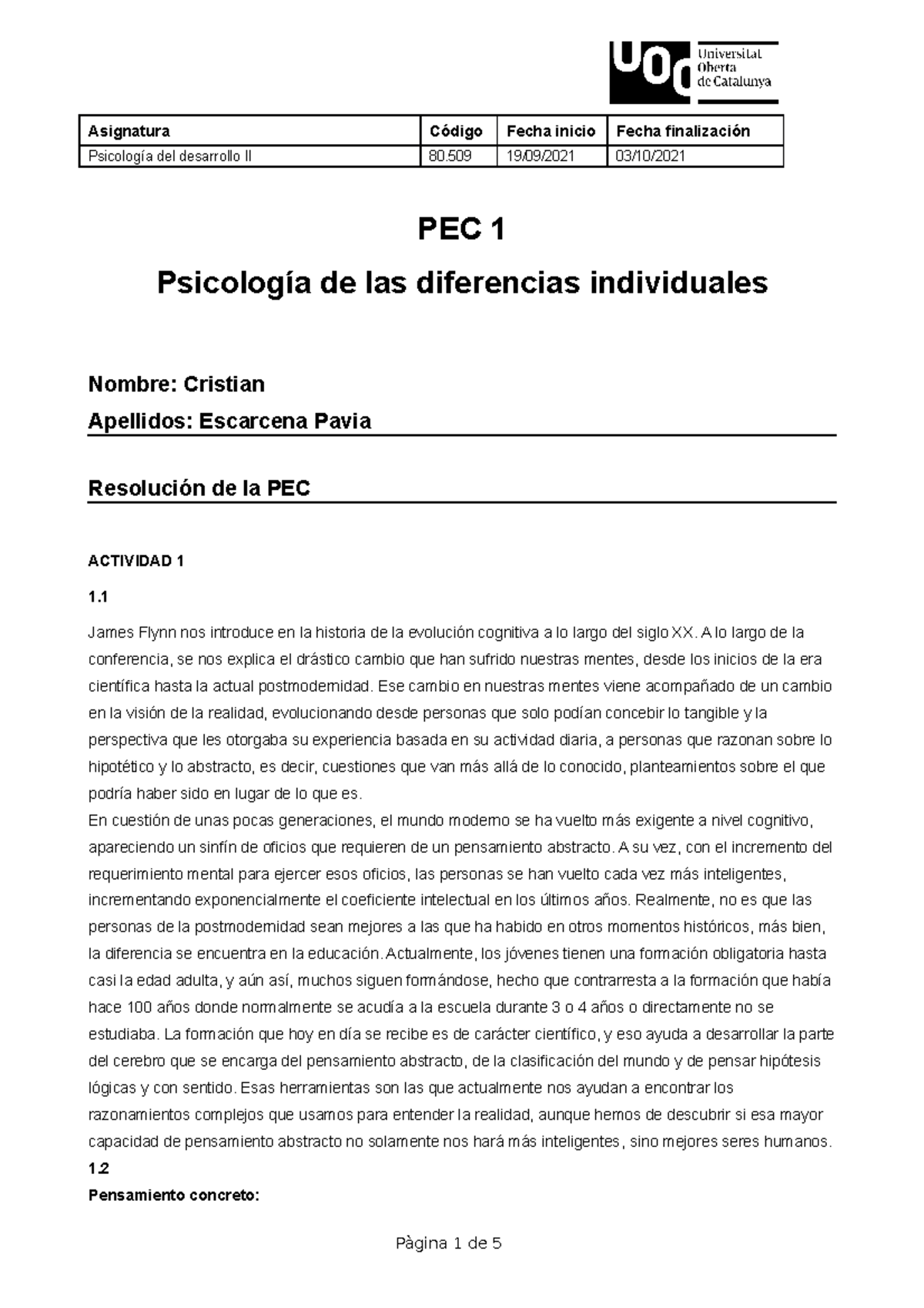 PEC 1 Psicología del desarrollo1 UOC Studocu