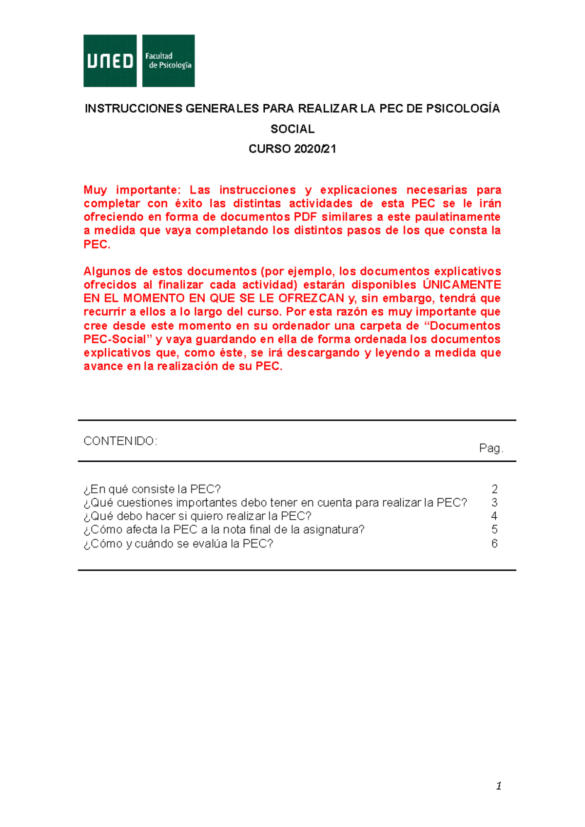 Instrucciones PEC Psicologia Social 2020 21 INSTRUCCIONES GENERALES