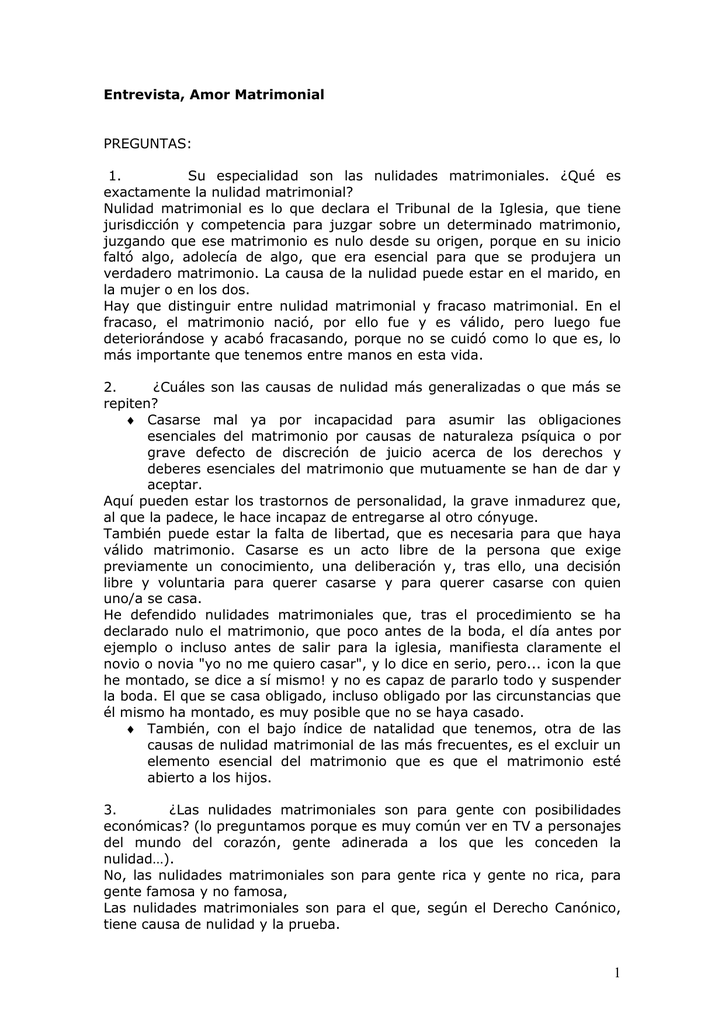 Entrevista, Amor Matrimonial PREGUNTAS