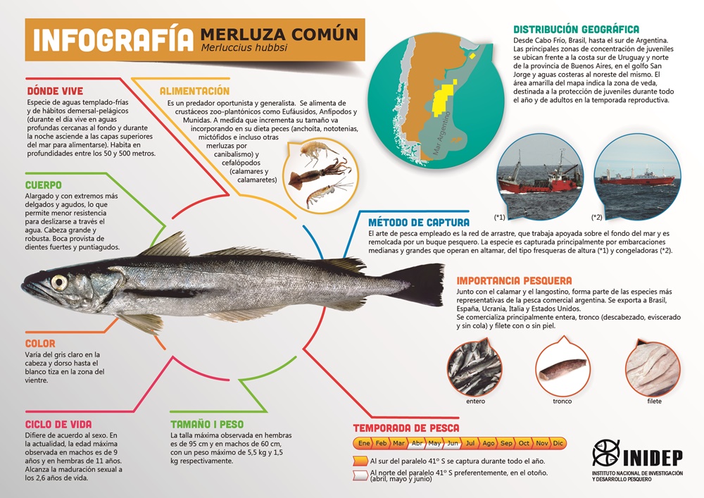En esta ocasión, Infocampo trae toda la información necesaria para cualquier interesado en interiorizarse acerca de la caballa, el calamar y la merluza común. Caballa. Hábitat. Aguas sommeras hasta fuera del talud continental (0 - 300m). Es una especie eritermica (9°C - 22°C) y erihalina (14 - 35). Alimentación.
