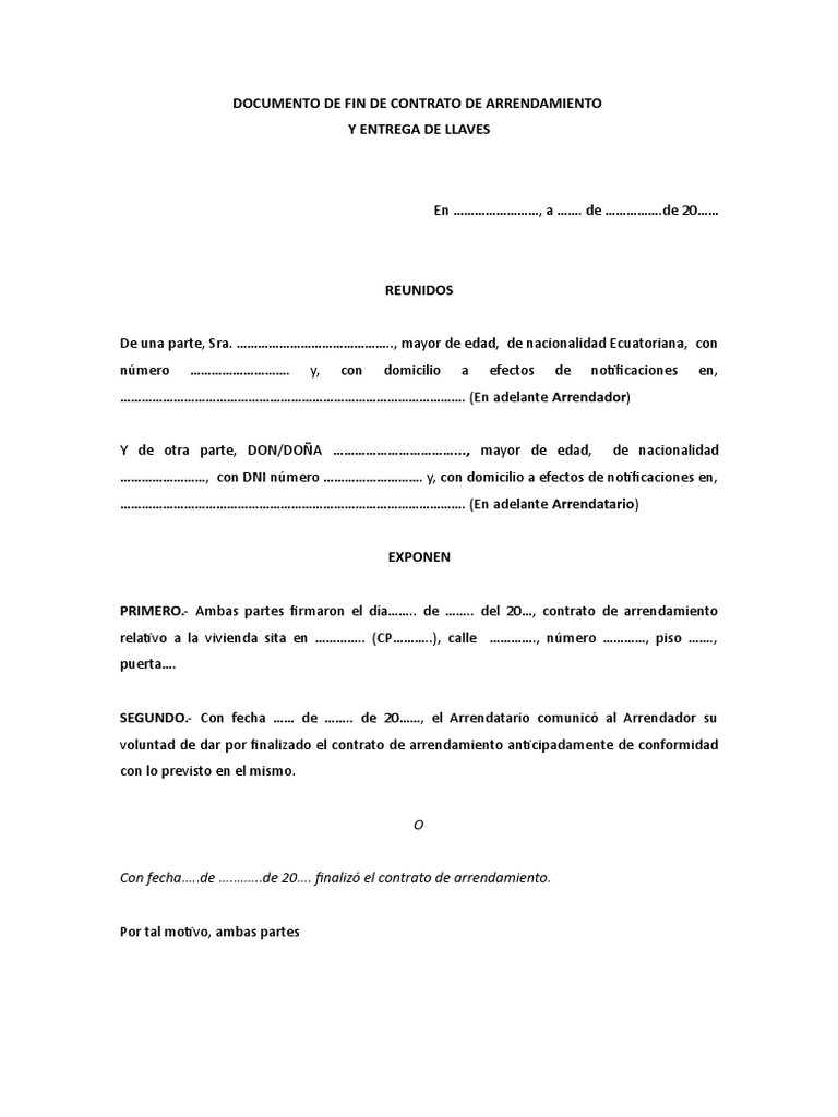 Modelo Fin Contrato Arrendamiento PDF Garantía de préstamo Gobierno