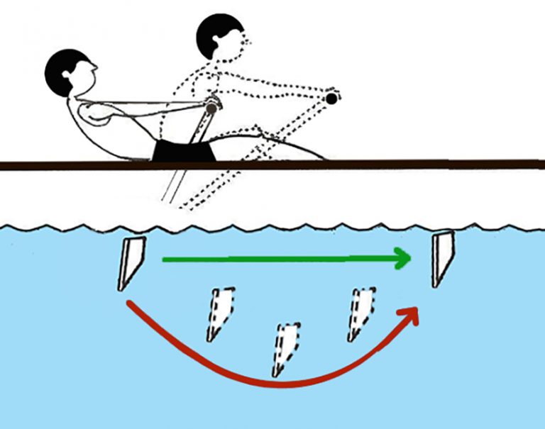El giro se puede hacer colocando una cuchilla en el agua en un lado de la embarcación, luego girará en esa dirección. Sin embargo, perderá velocidad cuando gire y, por lo tanto, será necesario remar poco después.. En lugar de comenzar en la parte delantera del bote y tirar de la cuchilla hacia el extremo del kayak, Empieza por el final.