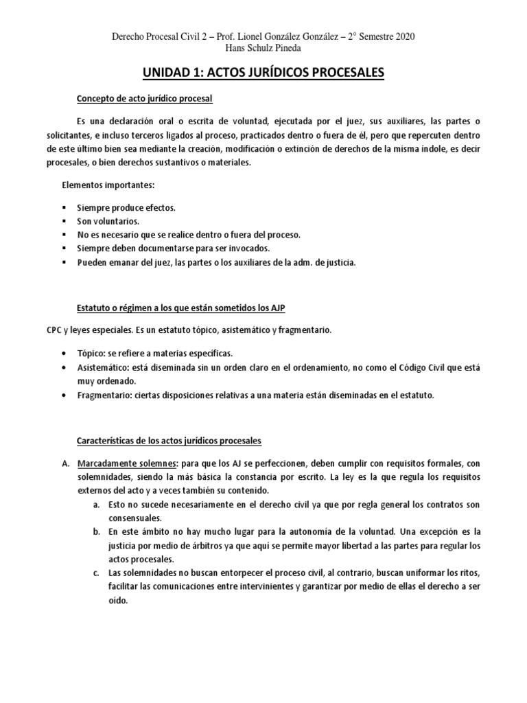 Unidad 1 Actos Jurídicos Procesales Concepto de Acto Jurídico Procesal PDF Ley procesal