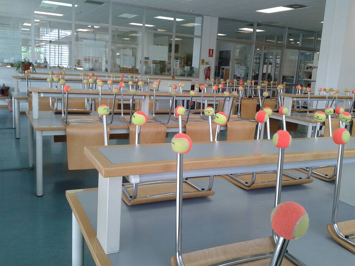 Una nueva adquisición para nuestra clase para combatir los ruidos innecesarios.Con unas pelotas de pádel o tenis y una silla. Adiós al molesto sonido de un.